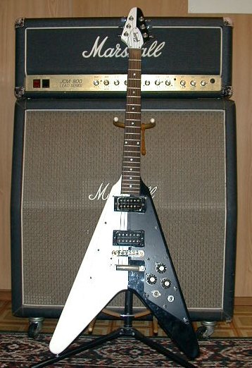 Flying-V RS ボディ・ネック:マホガニー ペグ:GOTOH ピックアップ:F:Greco Screamin' R:Gibson その他: 元はMichael Schenkerカラー。カッティングシート貼っただけ(笑)